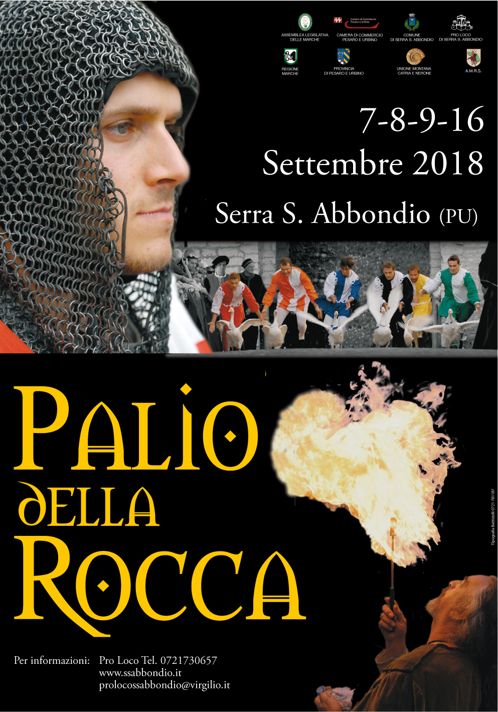 Serra Sant’Abbondio (PU) – E’ il Palio che una comunità intera aspetta tutto l’anno e vive con passione. Ricerca e rievocazione storica, tradizione, folclore, cultura: il borgo di Serra Sant’Abbondio, in provincia di Pesaro e Urbino, ospita il 7, 8, 9 e 16 settembre la 32° edizione del Palio della Rocca, Ad organizzarla, la Pro Loco e il Comune, con il patrocinio dell’assemblea legislativa delle Marche, Regione, Provincia, Camera di Commercio, Comunità montana del Catria e Nerone e Associazione marchigiana Rievocazioni storiche. Il Palio della Rocca riscuote anno dopo anno un successo di pubblico e critica sempre maggiori per la cura di ogni aspetto della rievocazione, la qualità del programma e la bellezza del luogo.