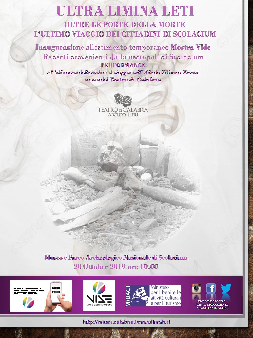 Domenica 20 ottobre 2019, alle ore 10.00, a Roccelletta di Borgia (CZ), presso il Museo e Parco Archeologico Nazionale di Scolacium, si terrà l’inaugurazione dell’allestimento temporaneo della Mostra Vide Ultra limina leti.