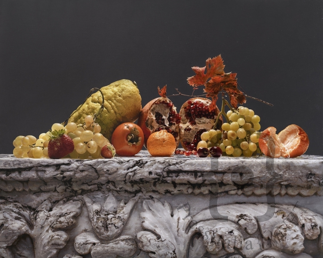 “Lo studio della pittura non è la mera rappresentazione dell’oggetto ma è colore e luce: i giusti rapporti fra le due cose danno la forma nello spazio. Il soggetto non va visto come tale ma astrattamente” Luciano Ventrone